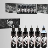 5 tonalità di nero perfette + 1 diluente: ogni tonalità è stata sviluppata su misura per soddisfare le precise esigenze artistiche di Kindamo, offrendo ai tatuatori di tutto il mondo l’opportunità di lavorare con gli stessi strumenti che hanno reso famose le sue opere.